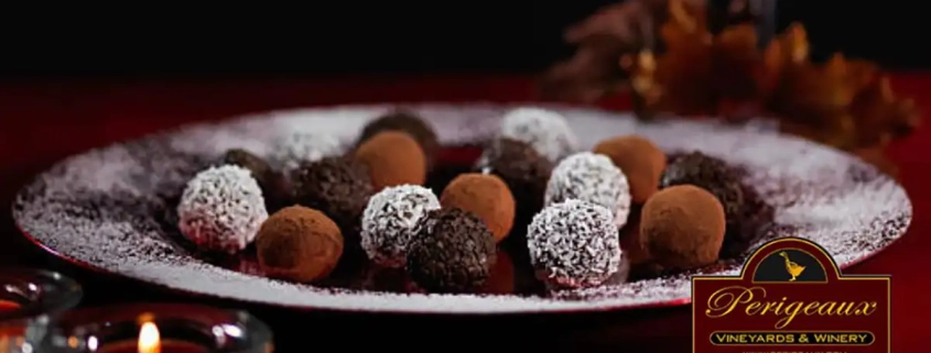 Four estate wines paired with gourmet truffles by Heritage Chocolates.