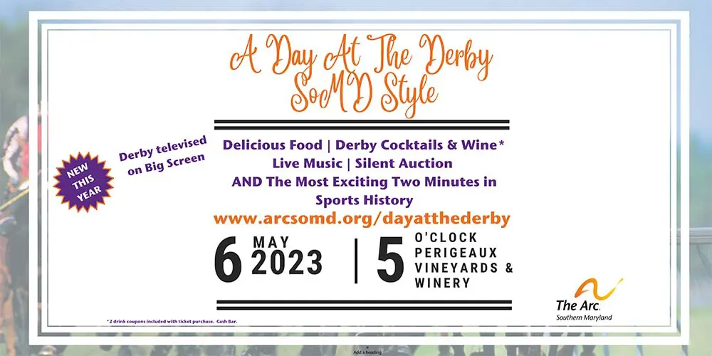 Perigeaux Vineyards & Winery 8650 Mackall Road, St. Leonard, MD, United StatesDeliscious Food | Derby Cocktails & Wine* | Live Music | Silent Auction AND The Most Exciting Two Minutes in Sports History www.arcsomd.org/dayatthederby